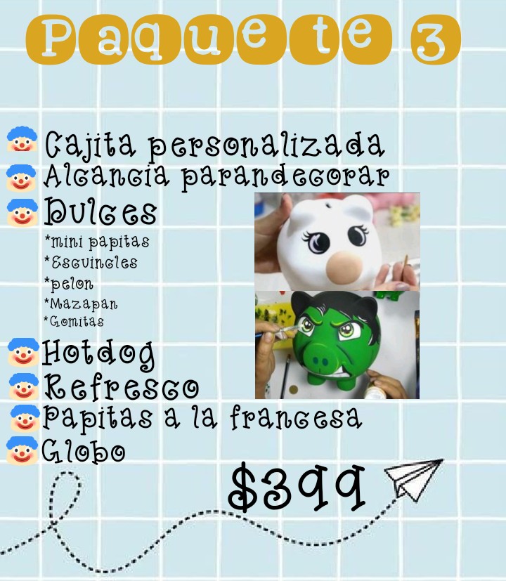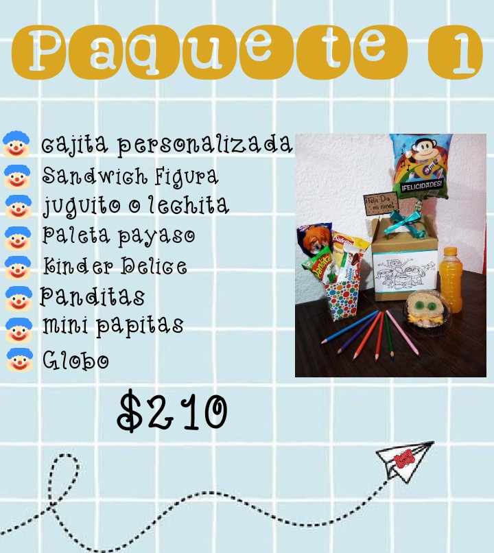 *Todos los paquetes llevan una hoja con su personaje favorito y colores.